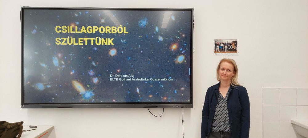 Dr. Derekas Alíz, az ELTE Gothard Asztrofizikai Obszervatórium csillagásza tartott elődadást a diákoknak "Csillagporból születtünk" címmel.